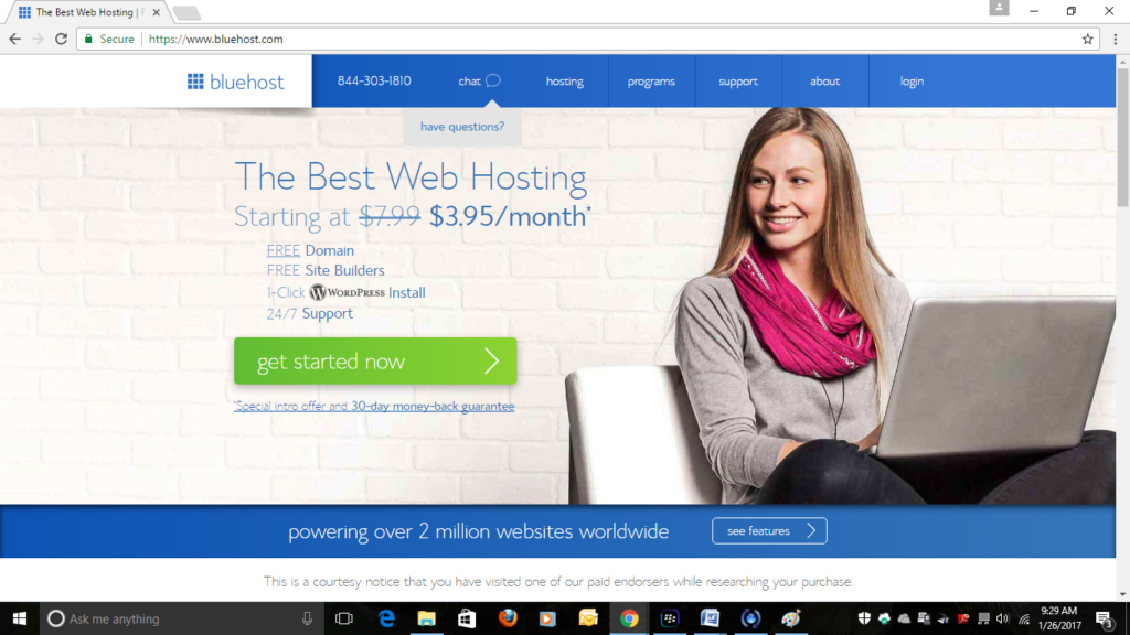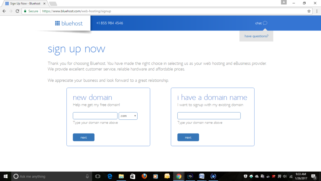 Let’s blow through this set-up. If you go to Bluehost, this is the first screen you’ll see: