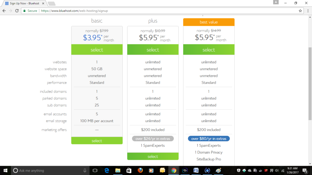 For now, just select the Basic (the cheapest plan) for $3.95/month. You’re not locked in to this package. We will drill down and figure out which package is best for you after the next step. Once you select a package, you’ll be taken to this page: